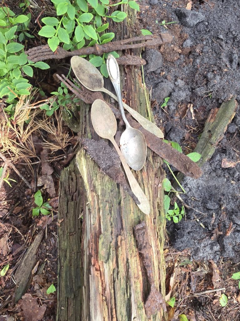 Kolejny raz szczęście uśmiechnęło się do Krzyśka. Trafił zakopany pod przewróconym, starym drzewem – składzik sztućców. W wyniku analizy przeprowadzonej przez Bartka i Michała udało się ustalić kilka faktów. Są to sztućce żelazne ale też kilka jest posrebrzanych… Wydawałoby się, że to tylko zwykłe stare sztućce ale dla nas to kawałek historii. Sens tego po co to wszystko robimy. Odkrywanie historii…