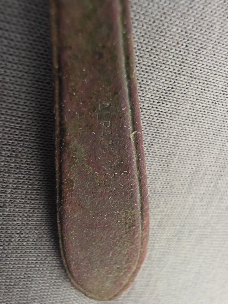 - DEP (widoczne na jednej z łyżek): to skrót od ,,Deposit” lub ,,Déposé” – oznaczenie używane głównie w Europie, wskazujące na zastrzeżenie wzoru użytkowego (fr. modèle déposé = zastrzeżony wzór). Może sugerować, że sztućce byty produkowane we Francji, Hiszpanii, Niemczech lub Belgii. Niektóre tyżki wyglądają na ręcznie wybite (możliwe oznaczenia wojskowe lub produkcja masowa z czasów wojny).